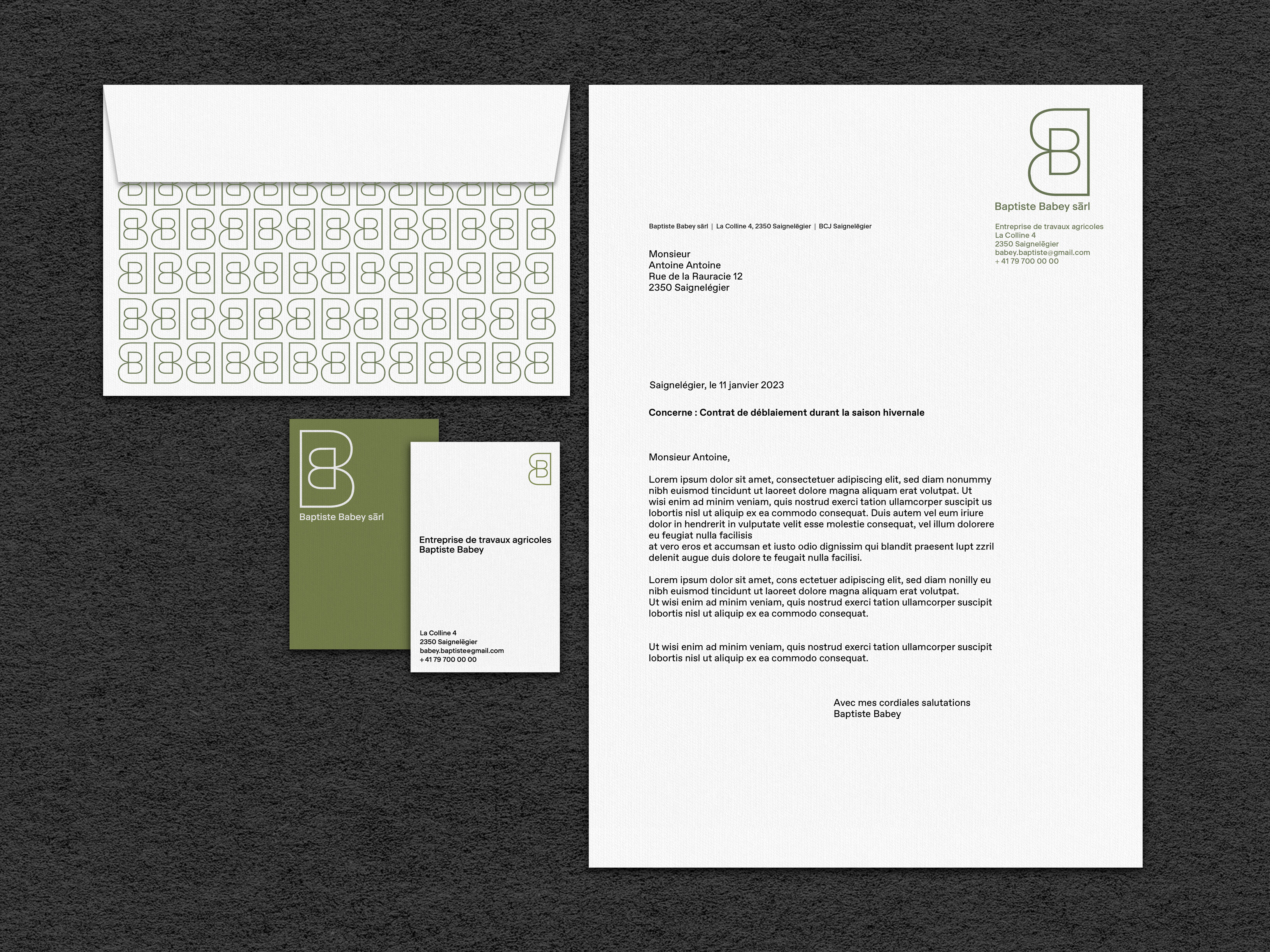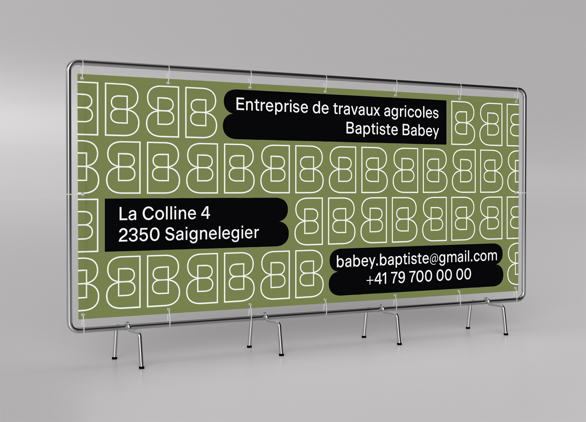 Création d’une identité visuelle complète pour une nouvelle entreprise de travaux agricoles, située aux Franches-Montagnes. Adaptation de l’identité sur différents supports tels les machines, les bâches ainsi que les formats traditionnels.