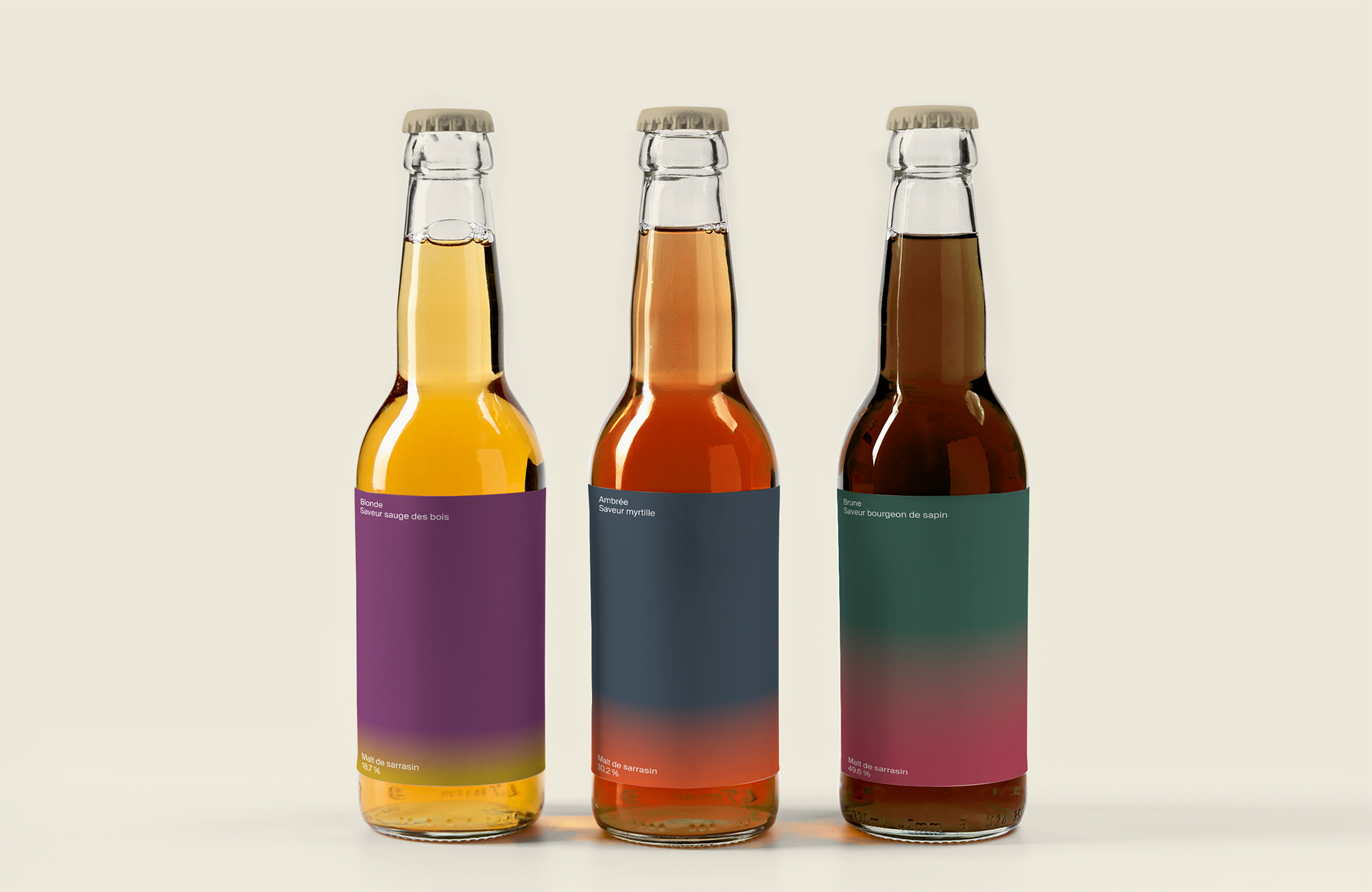 Création d’une identité visuelle pour une marque de bière suisse. Cette gamme de bières a la particularité d’être 100% gluten free, exclusivement fruitée et possède le label bio suisse.