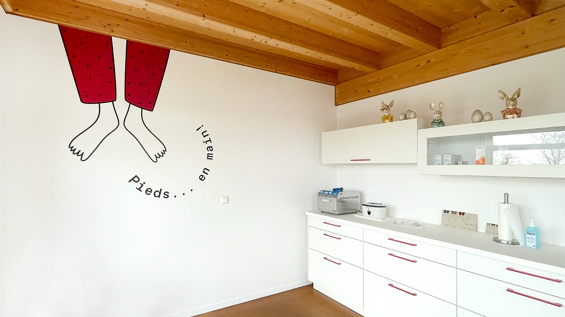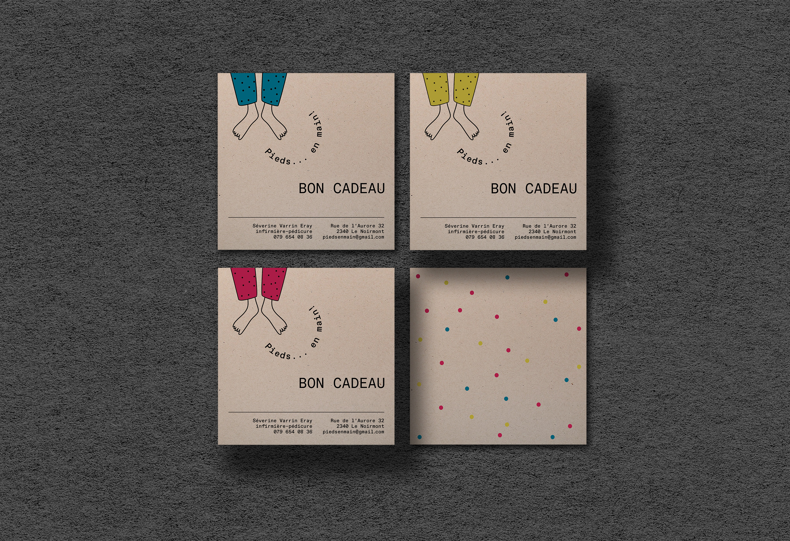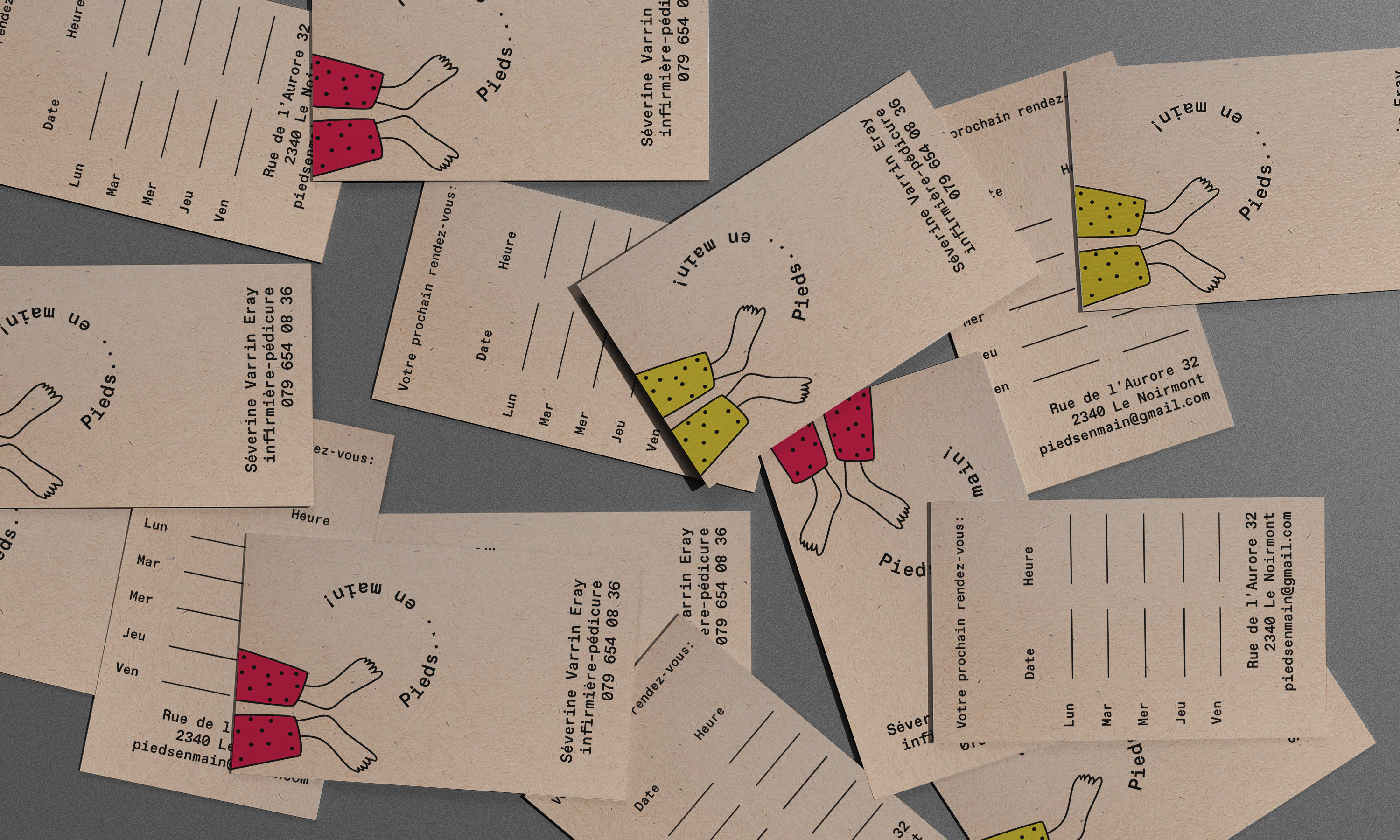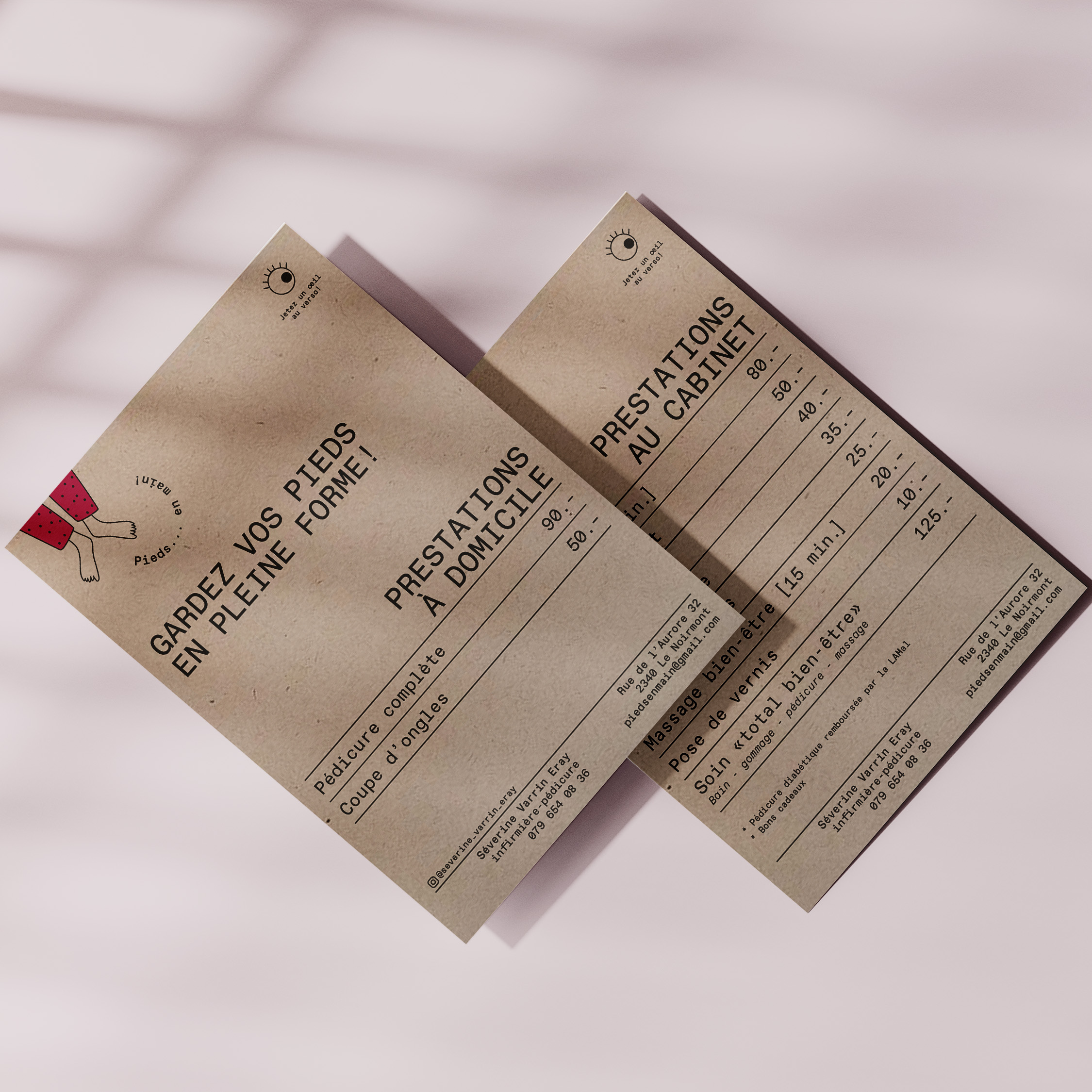 Réalisation d’une nouvelle identité pour un institut d’infirmière-pédicure. Ainsi qu’une adaptation du projet pour la signalétique qui guide les patients jusqu’au local situé dans une maison familiale.
